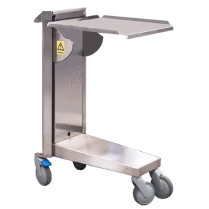 The trolley is made from stainless steel, SIS 2320. It has a solid stainless handle and high quality Ø125 mm ball bearing castors, two with brakes. Compact packaging reduces the freight cost.