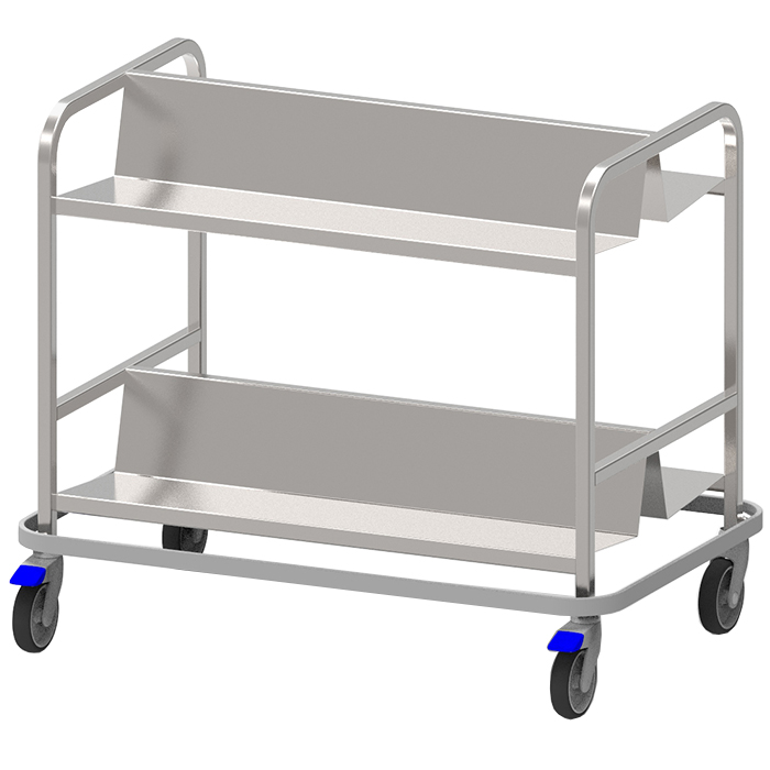Basket trolley for the transport and storage of crockery in 46×46 cm dishwashing baskets.