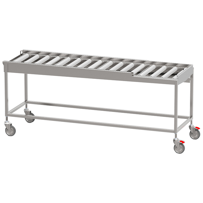 Transports dishwashing baskets 90° or 180° out of the dishwashing machine.