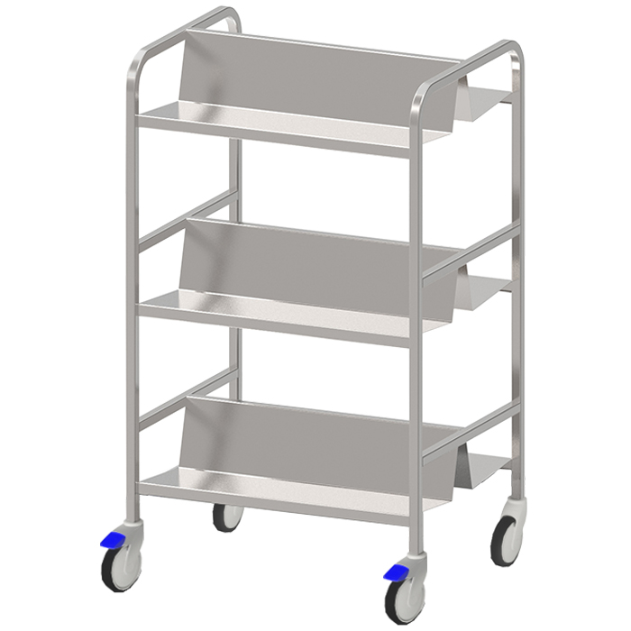 Assembled construction in stainless steel with fender, providing a durable and stable trolley. Shelves are made of stainless steel, with a medium shelf spacing of 380 mm. Easy to manoeuvre, equipped with 125 mm ball-bearing swivel casters, including 2 with brakes.