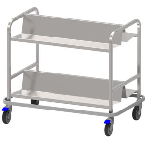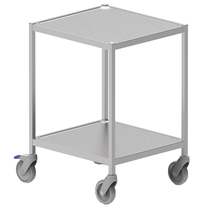 Assembled construction in stainless steel with fender, providing a durable and stable trolley. Shelves are made of stainless steel, with a medium shelf spacing of 380 mm. Easy to manoeuvre, equipped with 125 mm ball-bearing swivel casters, including 2 with brakes.