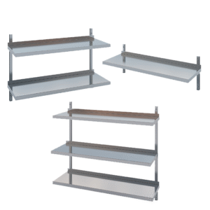 Complete shelves including brackets and wall rails. For wall mounting.